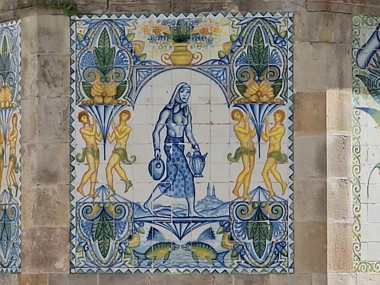 Mein Blick fällt auf das monumentale Denkmal in der Mitte: den Font dels Tres Mars, den Brunnen der drei Meere. Drei Götter tragen in Schalen die drei Meere, die Spanien umgeben. Entworfen wurde das Ganze von Josep Maria Jujol – einem Kumpel von Gaudí – anlässlich der Weltausstellung von 1929.