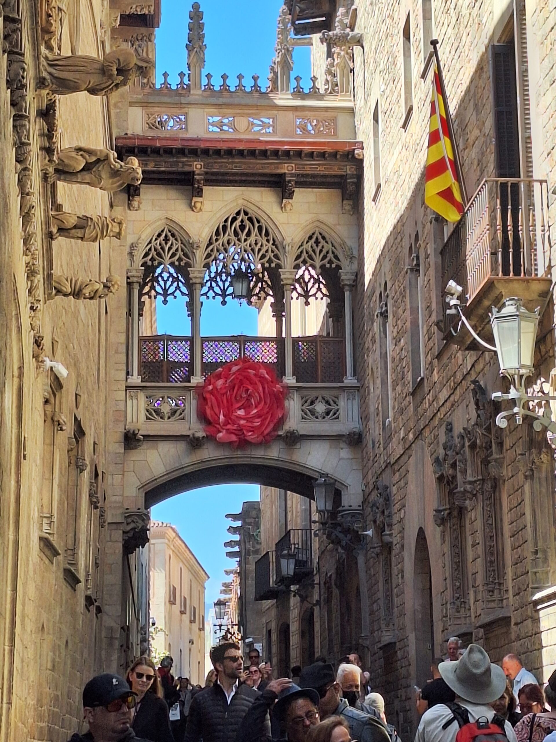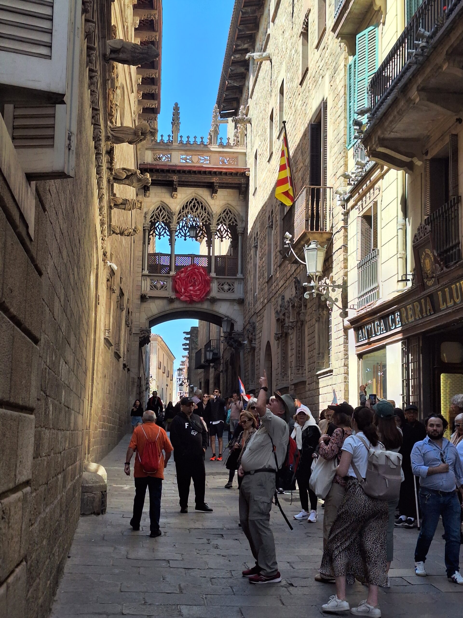 Auf dem Weg dorthin biege ich links in die Carrer del Bisbe ab. Hier verdichtet sich das touristische Geschehen schlagartig, denn jeder will unter der Pont del Bisbe hindurch.