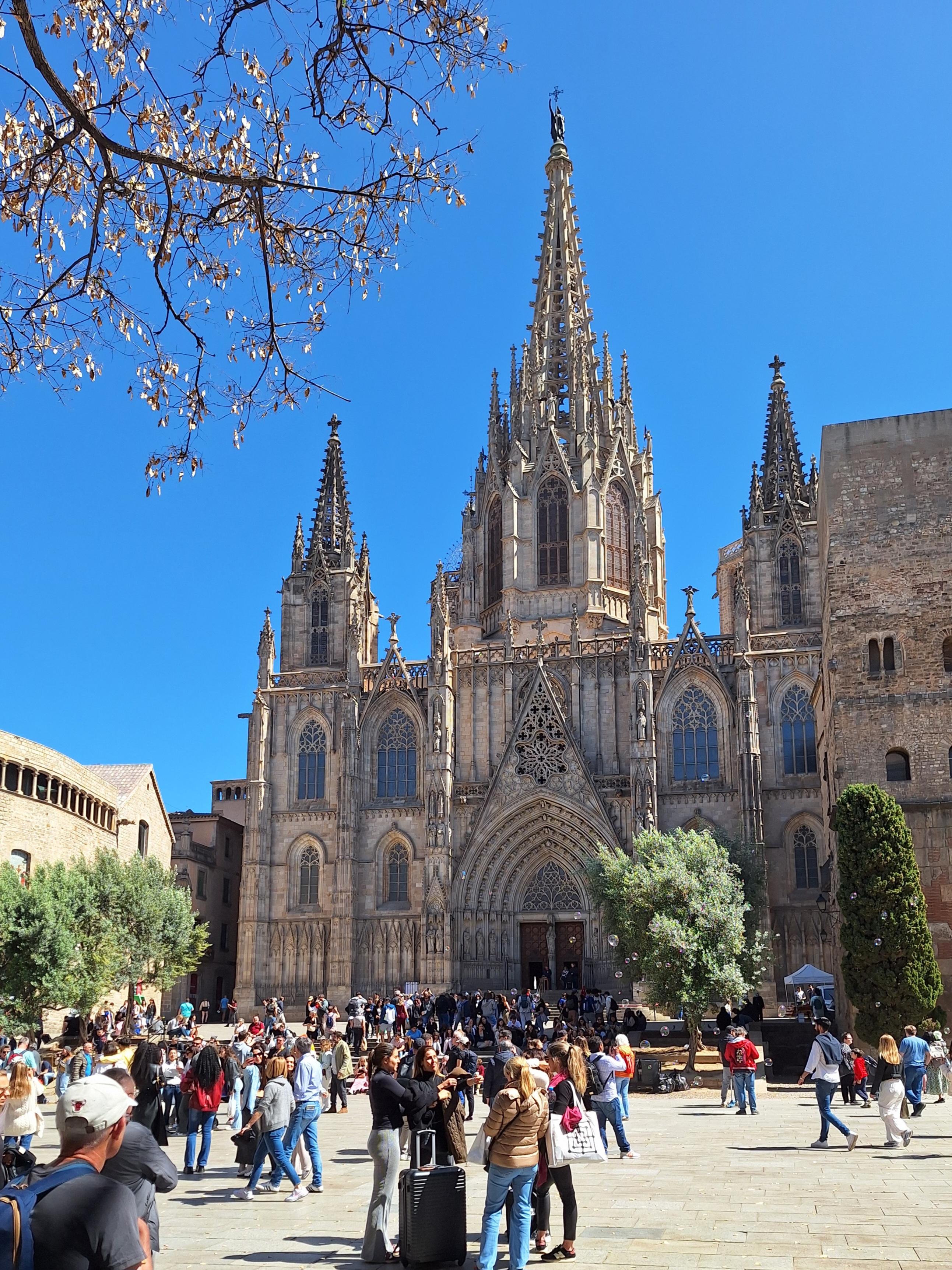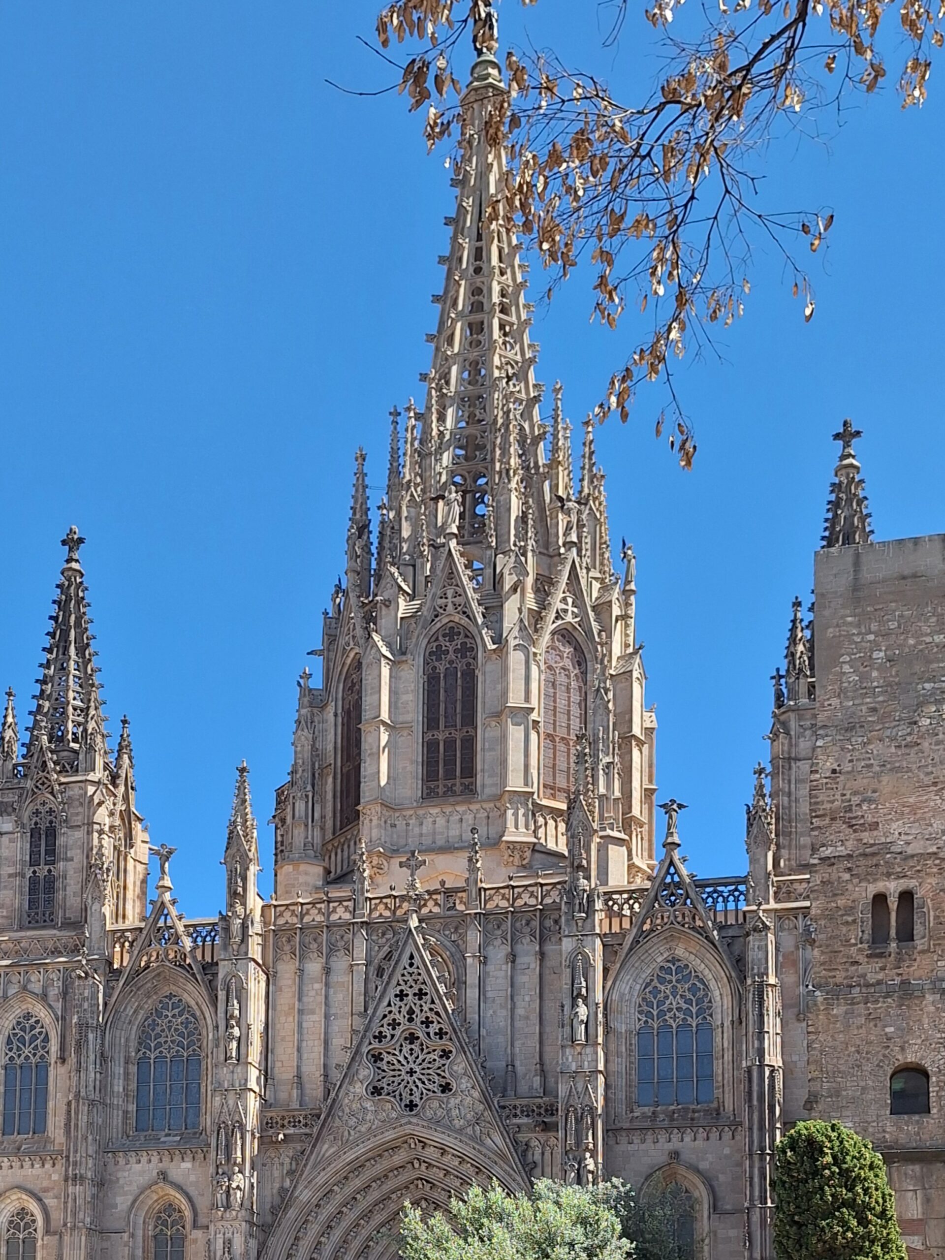 Um dem üblichen Touristenstrom zu entgehen, der sich wie eine unaufhaltsame Lavamasse die Rambla hinunterwälzt, entscheide ich mich für eine taktische Umgehung in die Altstadt. Zwar buhlen auch am Portal de l’Àngel die Konsumtempel lautstark um Aufmerksamkeit, doch kurz vor der Kathedrale biege ich rechts ab. Mein Ziel sind die schmalen Gassen, die zur Basílica de Santa Maria del Pi führen.