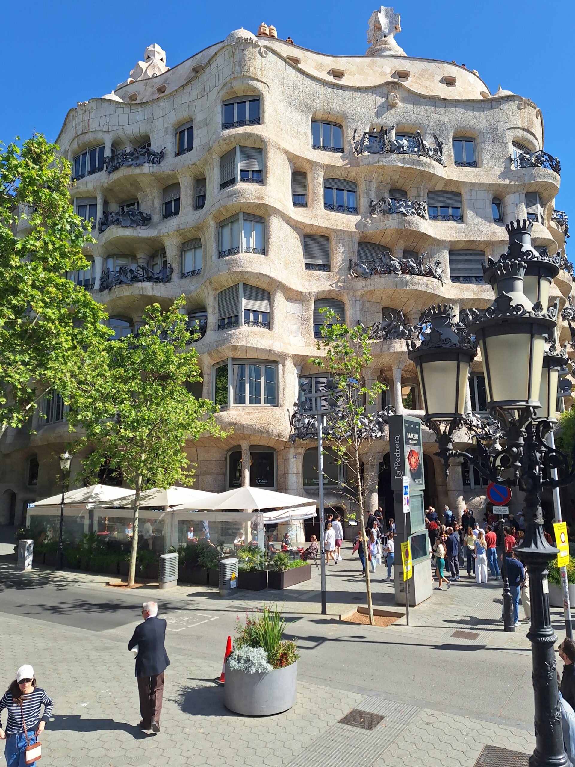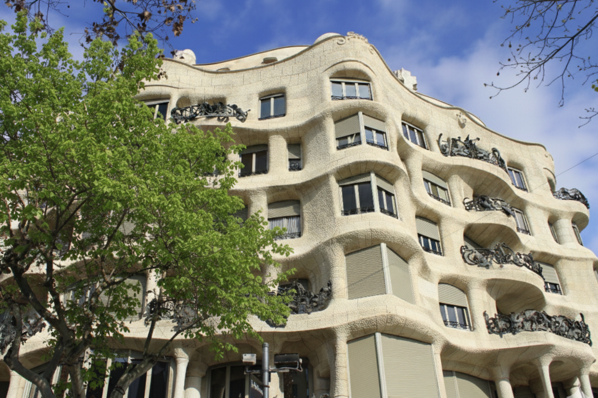 Während andere Architekten seiner Zeit noch brav mit Winkel und Lineal arbeiteten, hatte Gaudí sich hier bereits vollkommen von jeder geraden Linie und jeglicher Symmetrie verabschiedet. Er goss seinen sandfarbenen Puddingberg einfach mitten in das auch damals schon sehr schicke Stadtviertel. Wie bereits bei seinen Laternen legte er sich auch hier lustvoll mit der Stadtbürokratie an, da das Gebäude schlichtweg alle gängigen Bauvorschriften und Höhenbegrenzungen ignorierte.