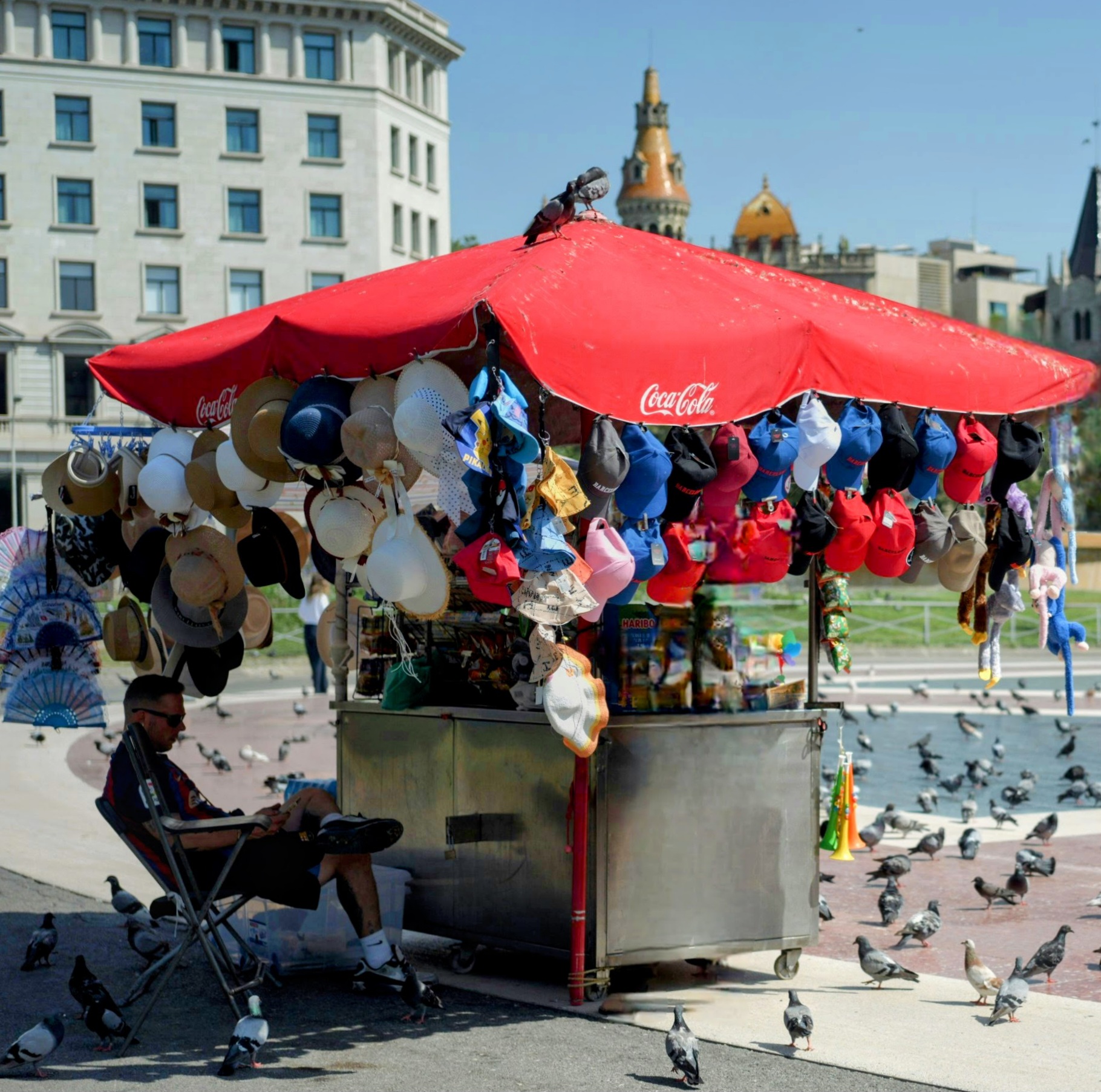 Es gibt Versäumnisse, die man mit einem Schulterzucken abtut, und solche, die sich unter der südlichen Sonne sehr schnell rächen. Bereits kurz nach meiner Ankunft am Plaça de Catalunya galt mein Augenmerk weniger der Architektur, als vielmehr der unerbittlichen Astronomie. Die katalanische Aprilsonne suchte mit großer Präzision genau die Stellen meines Hauptes, an denen das Haar im Laufe der Jahre eine eher strategische Rückzugstaktik gewählt hatte. Meine treue Leinen-Flatcap - dieses Meisterstück an luftiger Kühle, das mich sonst vor jeglicher Unbill schützt - verweilte derweil in sträflicher Einsamkeit in den Tiefen meines Campers. Während andere Touristen die Tauben fotografierten, suchte ich bereits nach einem Refugium aus Stoff und Krempe.