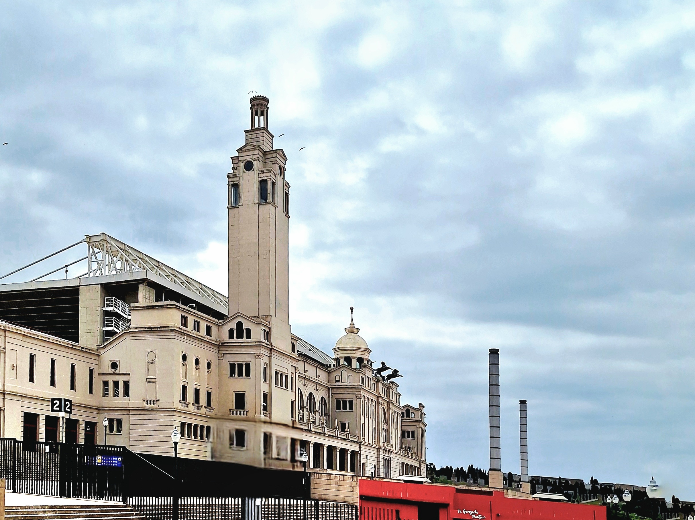 Direkt dahinter ragt die ehemalige Stierkampfarena Las Arenas hervor. Wo früher Stiere und Toreros um Leben und Tod kämpften, wird heute höchstens noch um das letzte Paar reduzierte Sneaker im Sale gerungen. In der Kuppel verbirgt sich jetzt ein Einkaufszentrum, und die einzige Gefahr da oben ist vermutlich eine überzogene Kreditkarte.