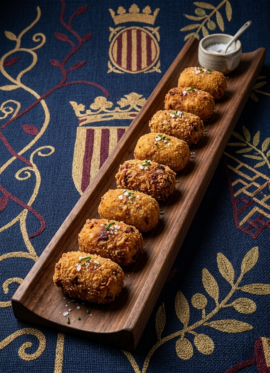 Ich sichere mir einen Platz draußen, um das Treiben am Hafen zu beobachten, und bestelle unter anderem einen „1/2 Metro de Croquetas“ (8 unidades) mit verschiedenen Füllungen. Das Gericht, das mir als spezifisches Restaurant-Highlight empfohlen wurde, wird durchaus dekorativ auf einem langen Brett serviert. Geschmacklich entpuppt es sich allerdings leider als aromatische Arbeitsverweigerung. Die Füllungen sind so ununterscheidbar und gleichgültig, als hätten die Zutaten kurz vor dem Servieren einen kollektiven Schweigepakt geschlossen.
