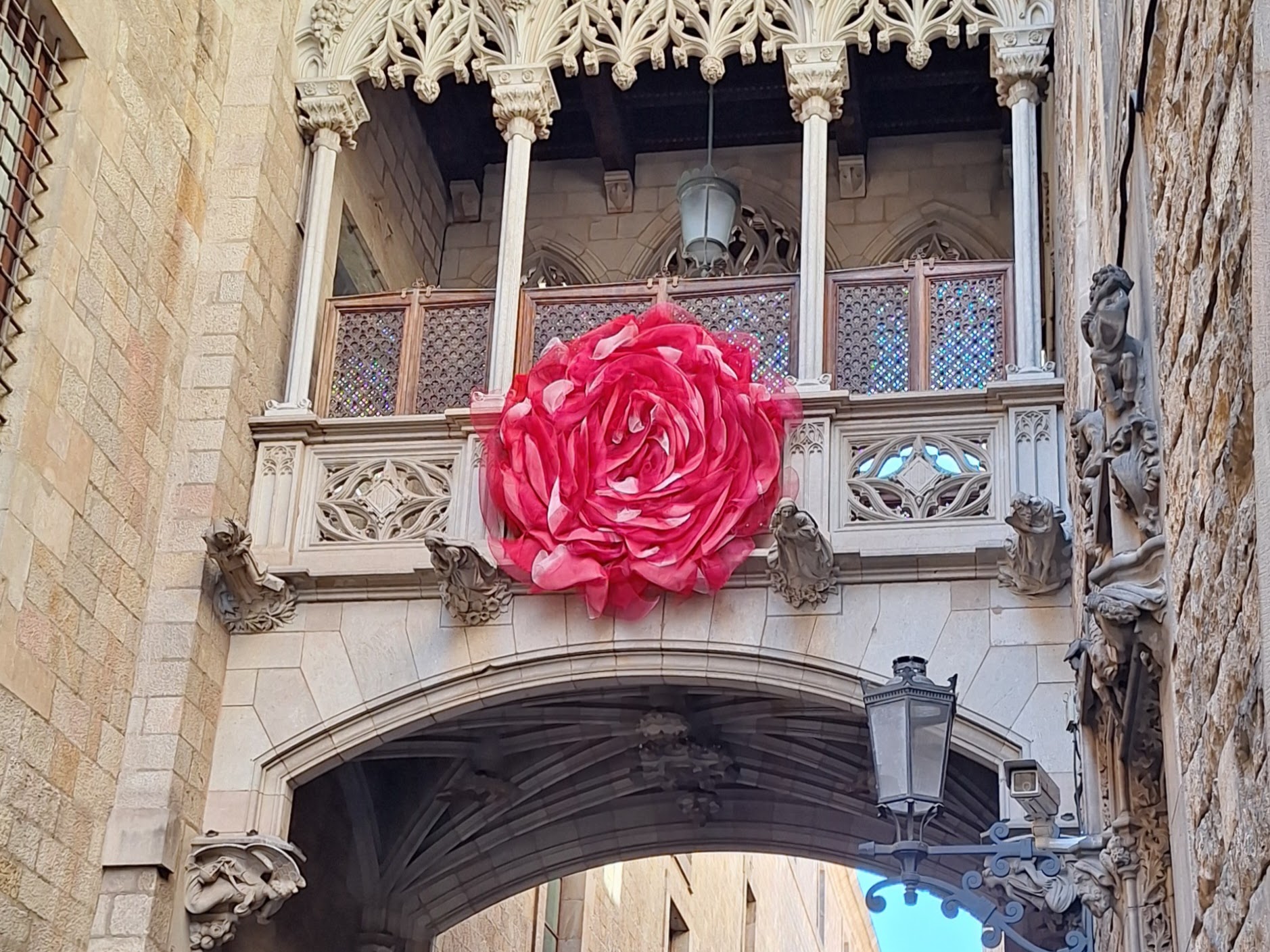 Die Brücke verbindet den Palau de la Generalitat, den Sitz der katalanischen Regionalregierung, mit der Casa dels Canonges, der Residenz des Präsidenten – ursprünglich das Kanonikerhaus für die hohen Klerikalen der Kathedrale.