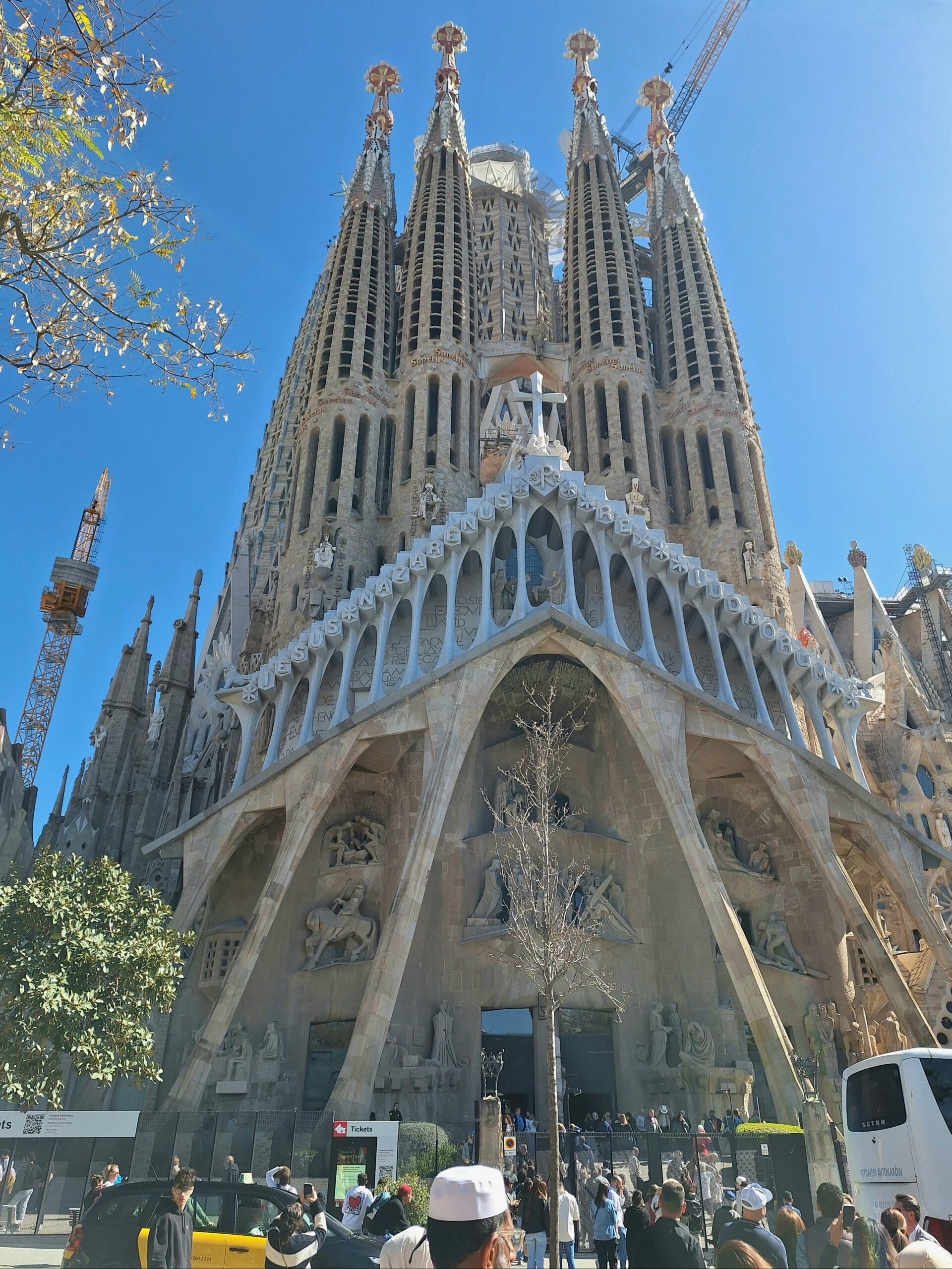 Gaudí legte ohnehin mehr Wert auf die Außenfassade. Er gestaltete sie so, dass die Menschen die Geschichten der Bibel auch im Vorbeigehen lesen können. Die Architektur ist daher darauf angelegt, sein 'in-Stein-gewordenes Evangelium‘ auf allen Seiten der Basilika jederzeit mit der Straße kommunizieren zu lassen. Ich verpasse vielleicht die Lichtspiele im Inneren,und habe auch nicht das perfekte Bild auf dem Chip, aber ich habe die perfekte Stimmung im Kopf.