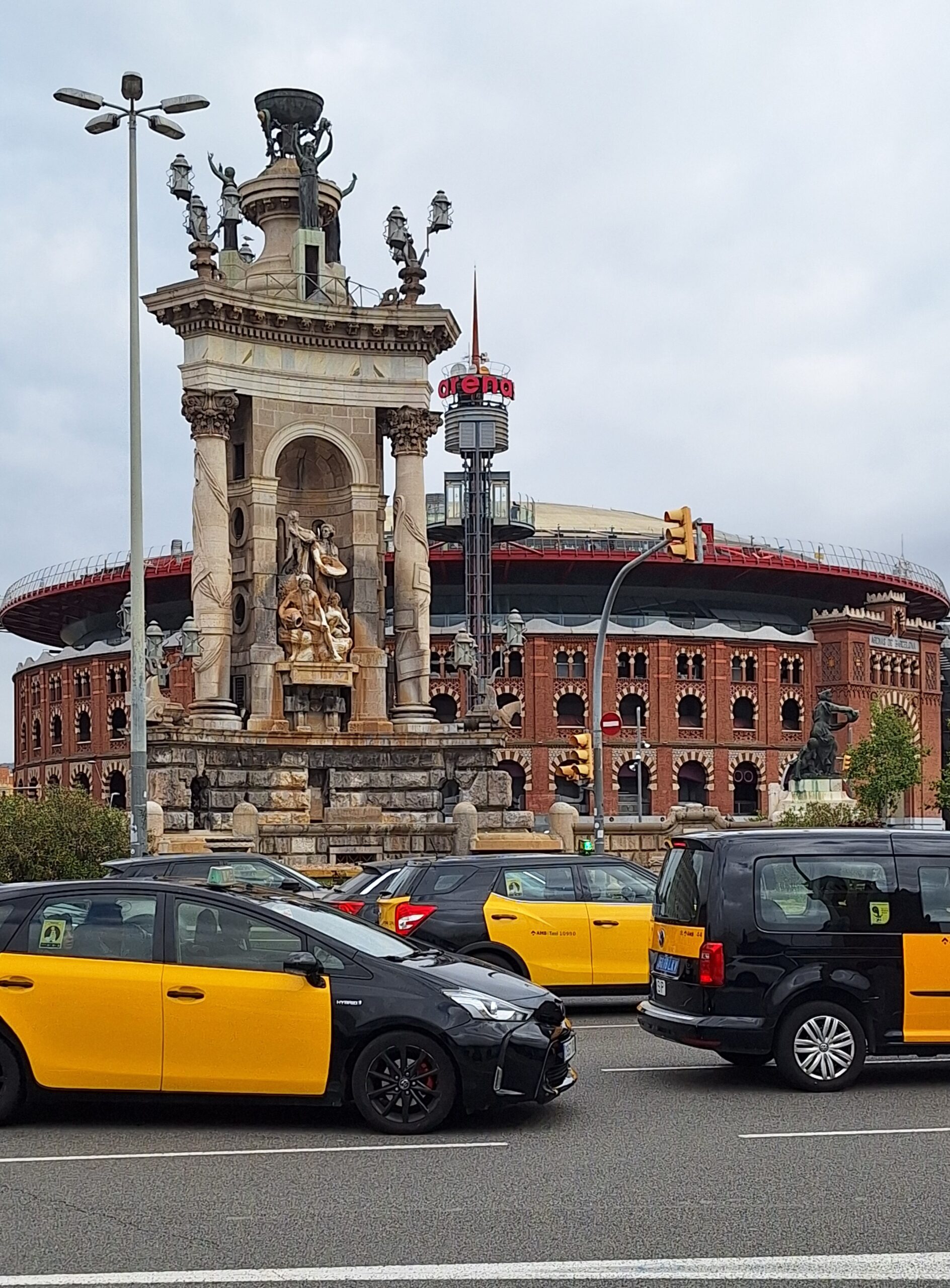 Ich steige an der Plaça d’Espanya aus dem Bus und stehe erst einmal im Epizentrum eines schwarz-gelben katalanischen Taxi-Balletts.