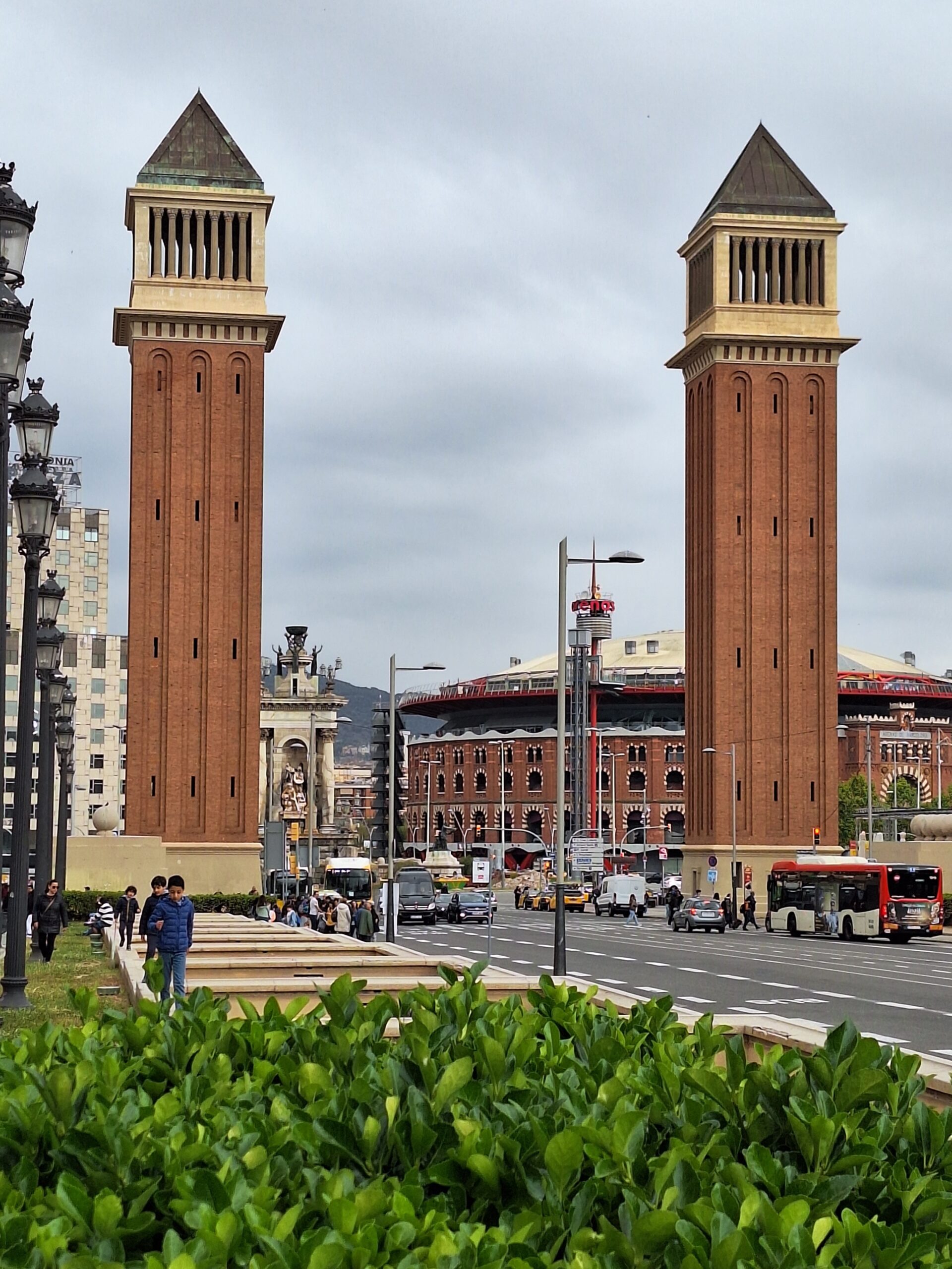 Ich gehe zu Fuß weiter auf die beiden Venezianischen Türme zu. Sie stehen dort wie zwei überdimensionierte Türsteher einer längst vergangenen Epoche – und auch hier begegnet mir wieder dieses wunderbare katalanische Talent für ein gekonntes Plagiat.