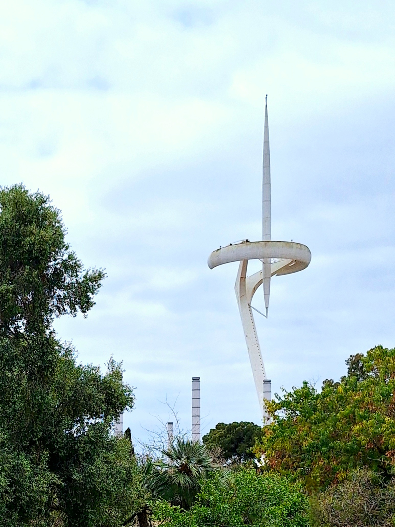 Eines der markantesten Wahrzeichen, das hier oben für die Spiele aus dem Boden gestampft wurde, ist der 136 Meter hohe Torre Calatrava. Eine Funkstation, die seinerzeit die Fernsehübertragungen der Spiele sicherstellte. Doch da wir uns in Barcelona befinden, stellte man dafür nicht einfach einen klobigen, ästhetikfreien Betonturm in die Landschaft. Nein, man engagierte einen Stararchitekten, der für seine besonderen skelettartigen, organischen Formen bekannt ist, und ließ ihn einfach mal machen.