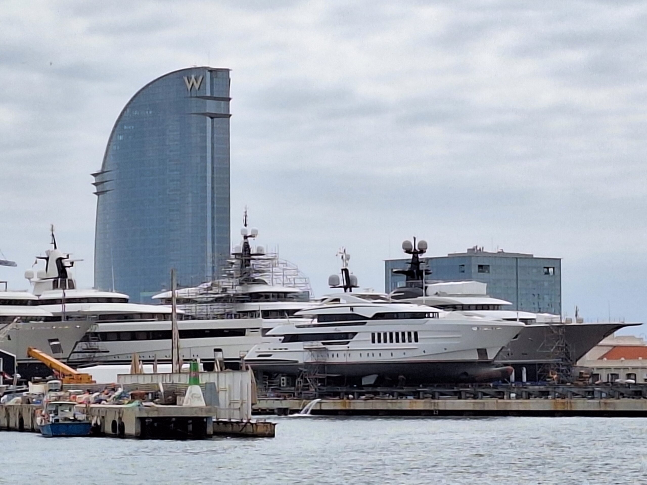 Auf den Terrassen vor dem Centre Comercial bleibe ich kurz stehen, fasziniert von den Yachten, die in der gegenüberliegenden Werft gebaut werden, und gehe danach weiter zur Moll d’Espanya.