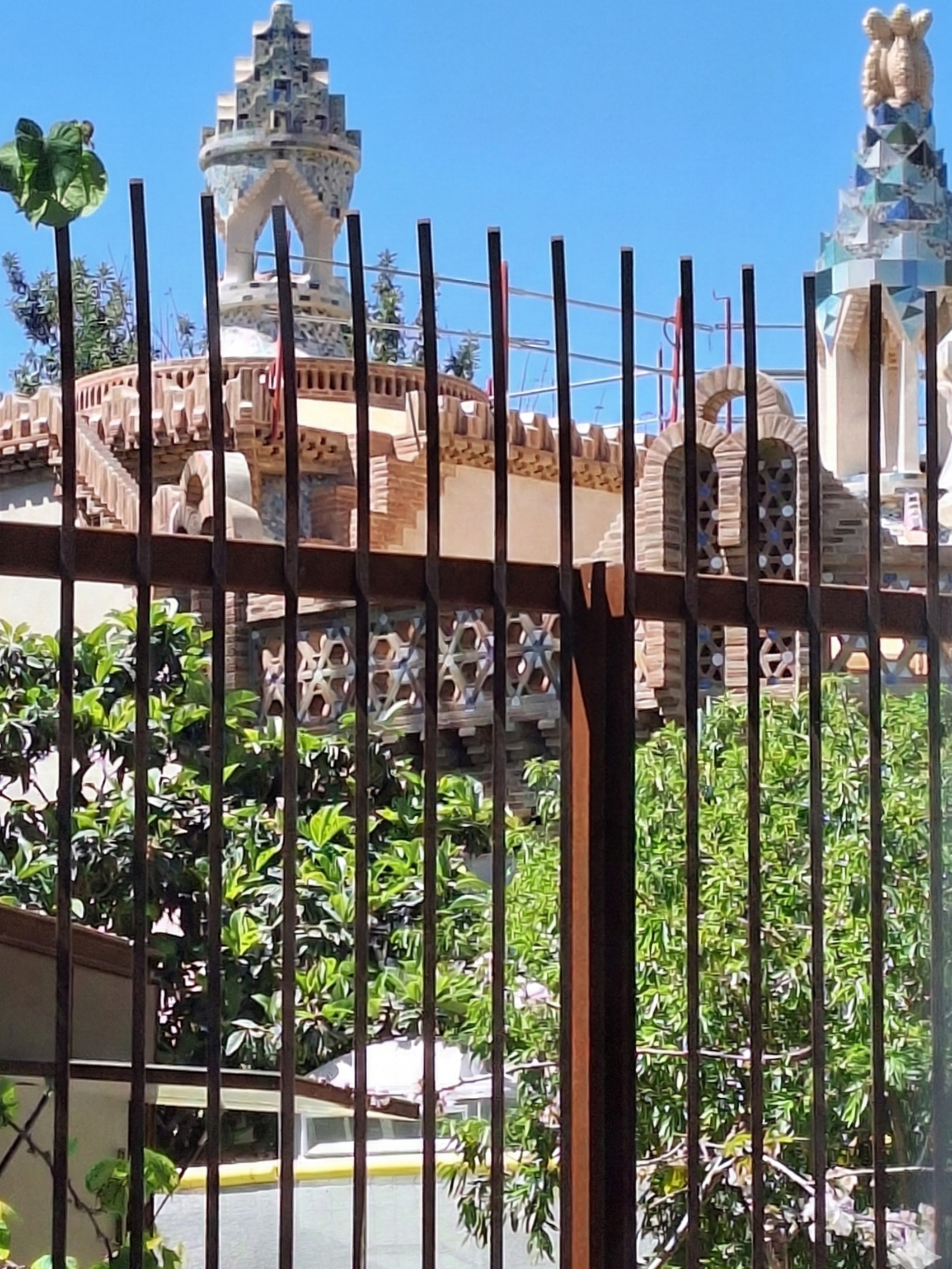 Oben angekommen, falle ich buchstäblich über den ersten Kiosk her und kaufe mir zwei kleine Fläschchen Wasser zum Preis eines Jahrgangs-Champagners. Eine vernichte ich sofort, die andere ist für den Park, denn man weiß ja nie, was dieser Gaudí heute noch für mich geplant hat.